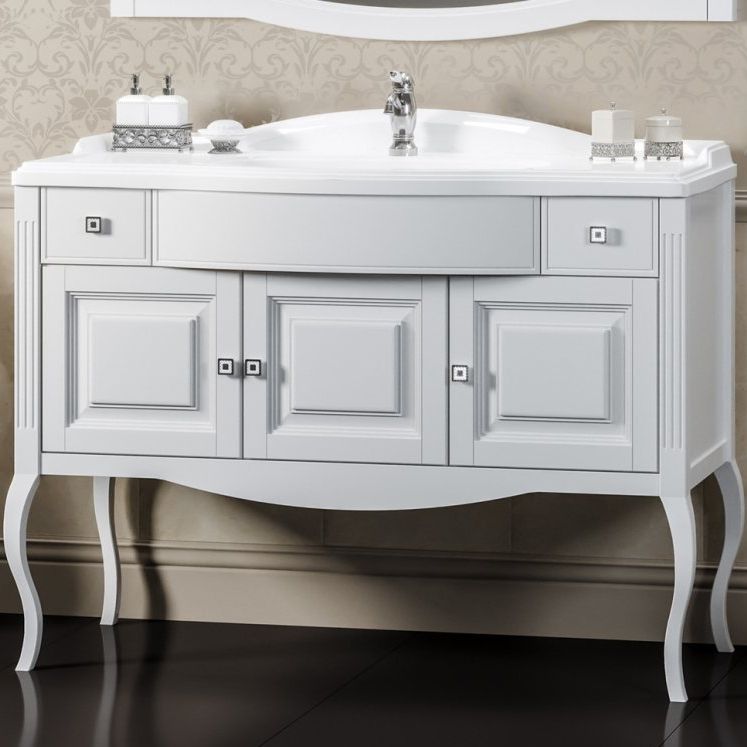 Тумба под раковину Opadiris Лаура 120 Z0000012472. Цвет: белый матовый.Выполнена в классическом стиле с плавными изогнутыми формами и изящными гнутыми ножками. Фасадные элементы украшены резными узорами. Особую роскошь добавляют ручки инкрустированные кристаллами Swarovski.Материал фасада/корпуса: массив бука/влагозащищенный МДФ.