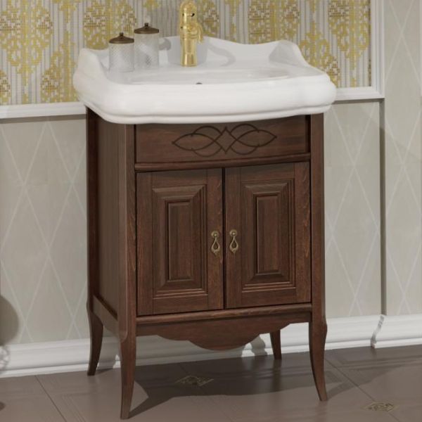 Тумба под раковину Opadiris Лоренцо 60 Z0000011066. Цвет: светлый орех.Выполнена в классическом стиле с плавными изогнутыми формами и изящными слегка гнутыми ножками. Фасадные элементы украшены резными узорами.Материал фасада/корпуса: массив бука/влагозащищенный ЛДСП+массив бука.