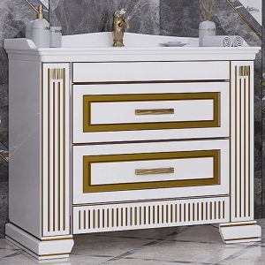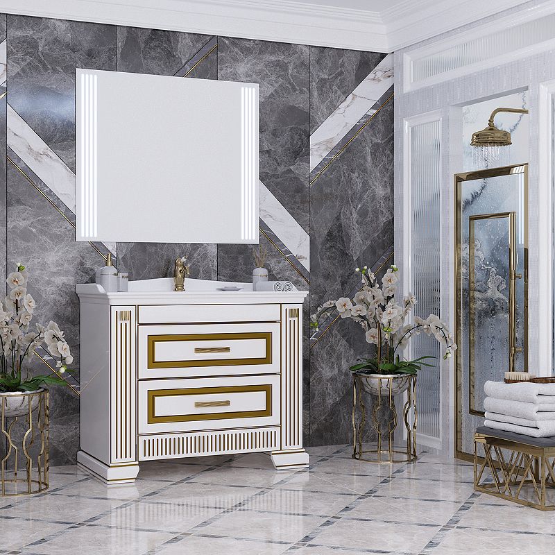 Тумба под раковину Opadiris Оникс 00-00003548 Белая глянцевая с золотой патиной купить