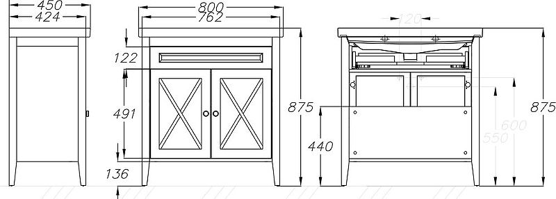 Две распашные дверцы с доводчиками для плавного и бесшумного закрывания.