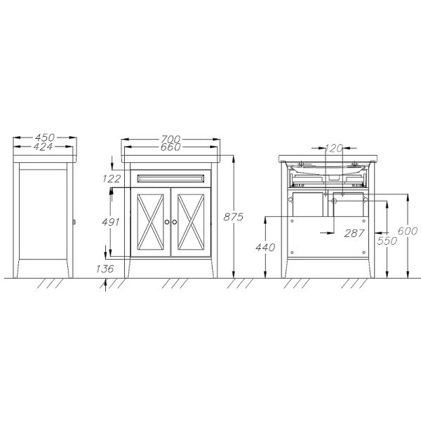 Габариты корпуса тумбы (ШхВхГ): 660х875х424 мм.