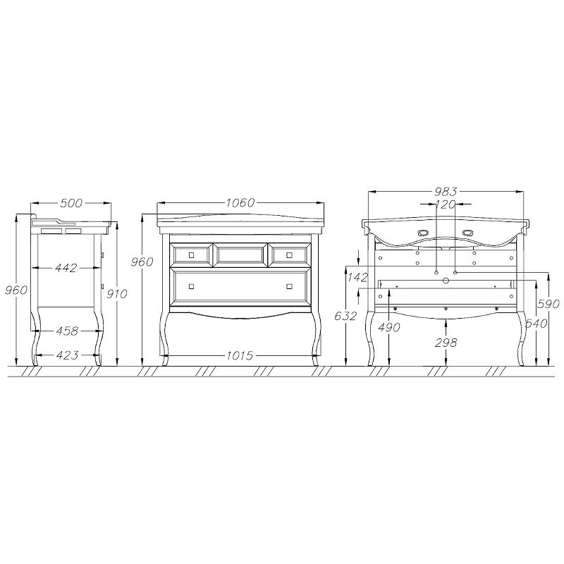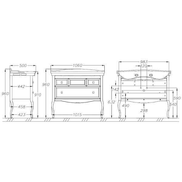 Габариты корпуса тумбы (ШхВхД): 1015х910х458 мм.