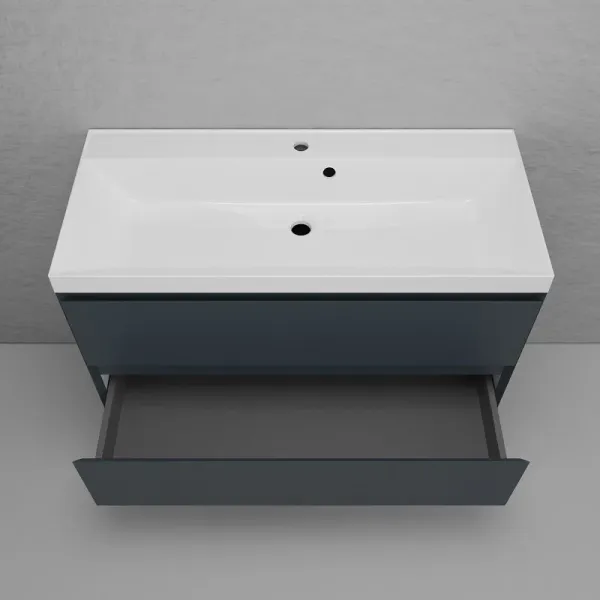 Эмаль премиум класса Hesse (Германия) с сатиново - матовым эффектом. Вместительные ящики оснащены системой плавного закрывания HETTICH. Раковина приобретается отдельно. Подходит раковина Asti 100 в белом цвете, графит, жасмин и серый шелк.