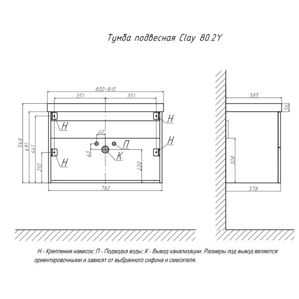 Тумба под раковину подвесная Velvex Clay tp.CLA.9595.80.2Y дуб верона, 80 см купить