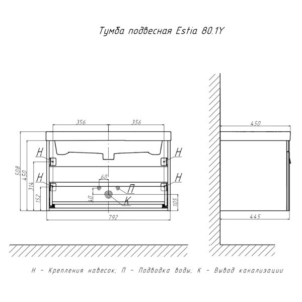 Тумба под раковину подвесная Velvex Estea tp.EST.MOD.80.1Y, 80 см купить