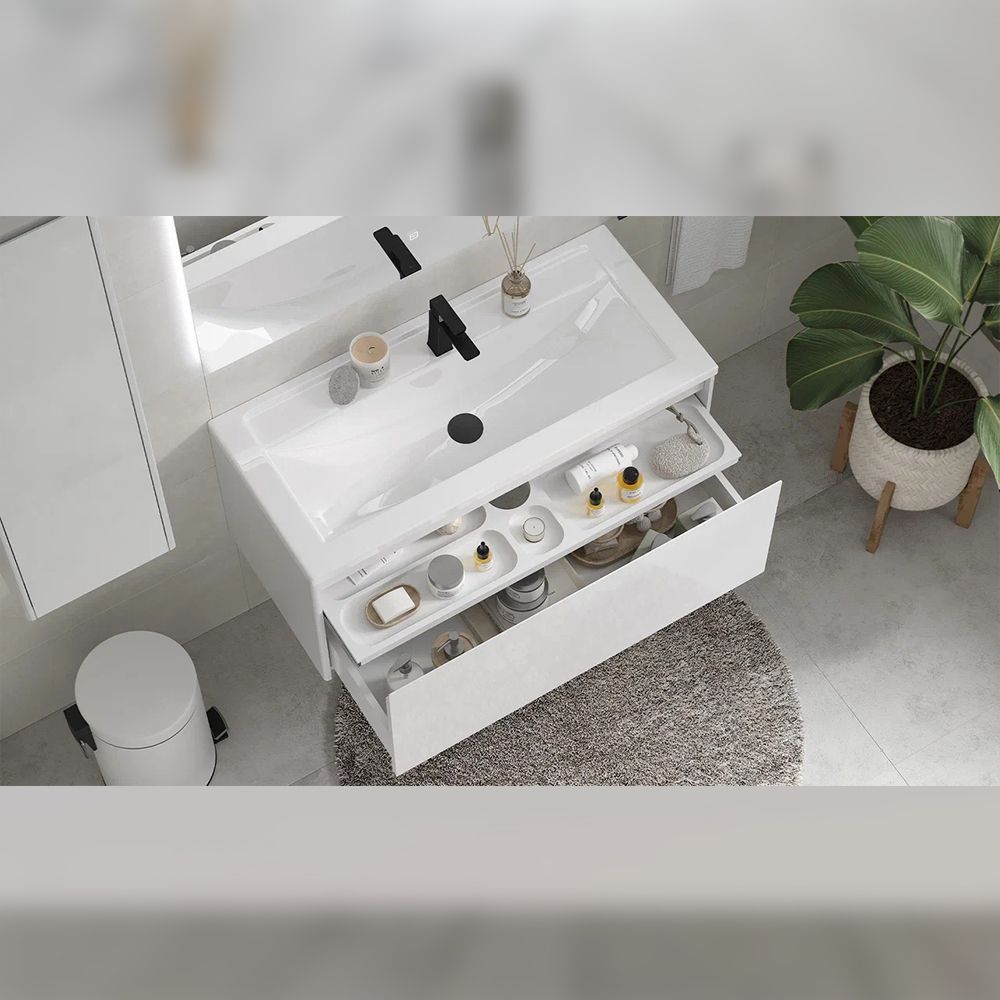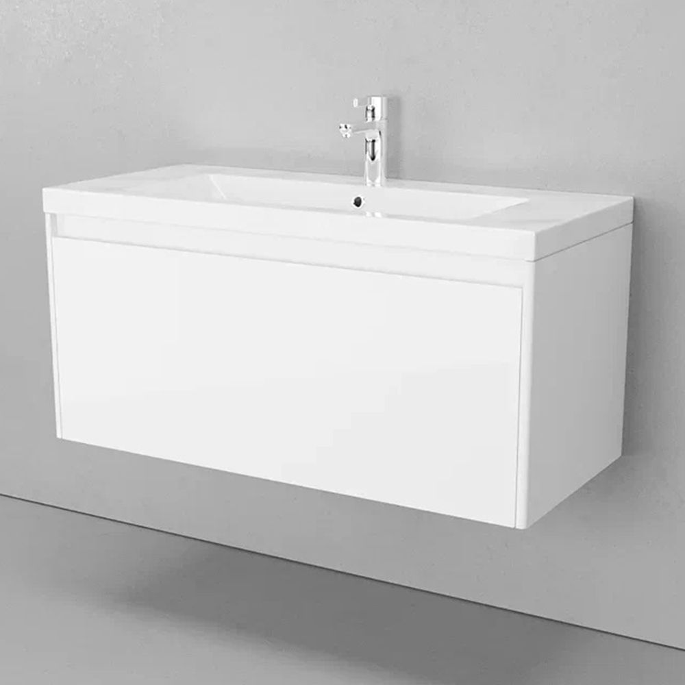 Тумба под раковину подвесная Velvex Klaufs tp.KLA.MAR.100.1Y белый, 100 см: 1 выдвижной ящик, выдвижной органайзер.