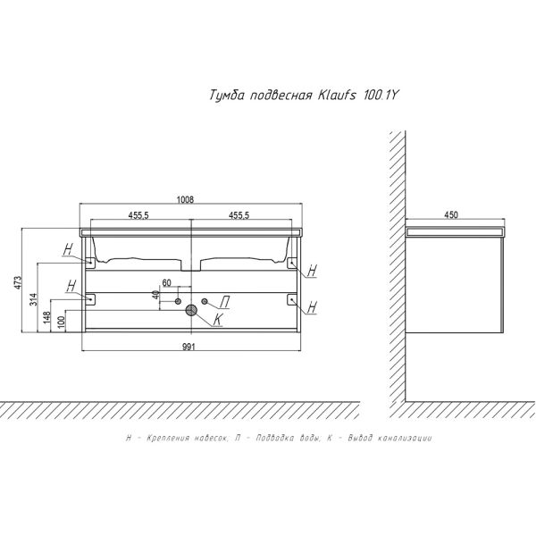 Тумба под раковину подвесная Velvex Klaufs tp.KLA.MAR.100.1Y белый, 100 см купить
