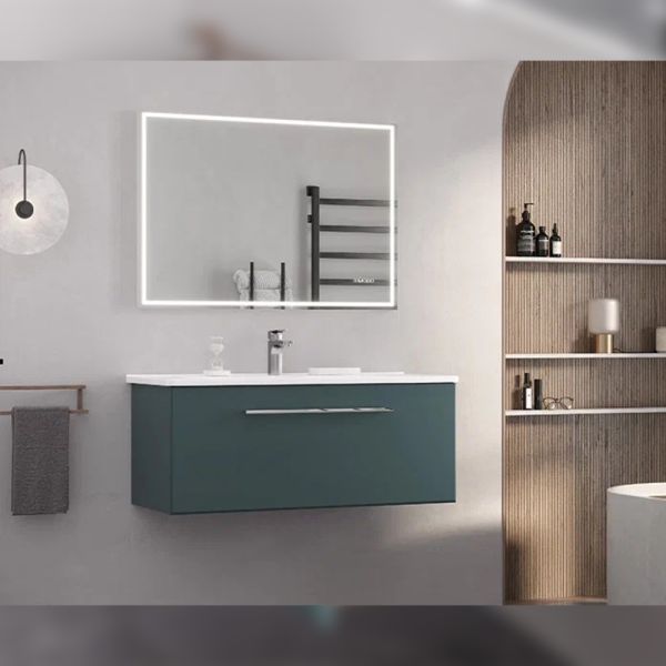 Тумба под раковину подвесная Velvex Posse tp.POS.OSK.105.1Y верде, 105 см: 1 выдвижной ящик с механизмом плавного закрывания.