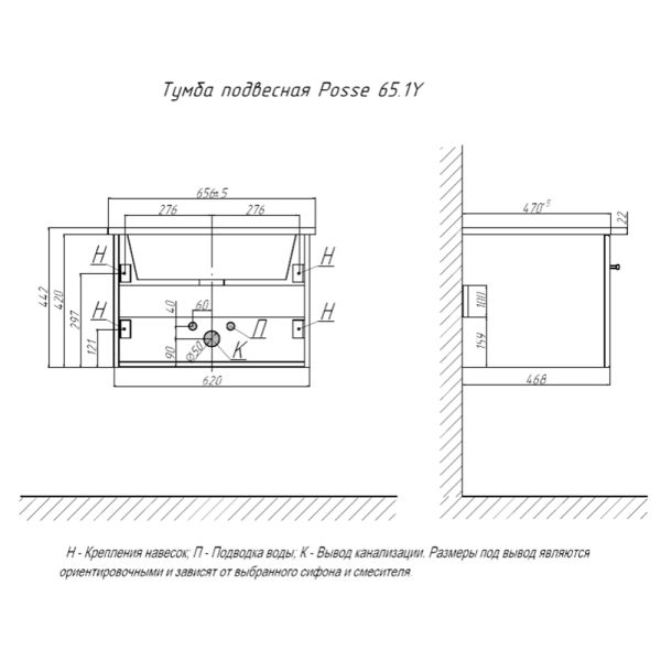 Тумба под раковину подвесная Velvex Posse tp.POS.OSK.65.1Y верде, 65 см купить