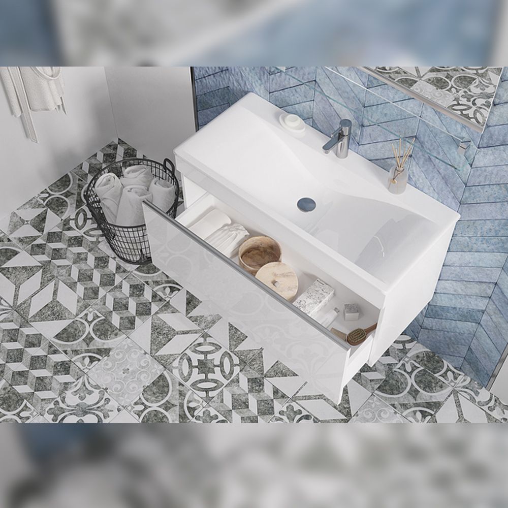 Тумба под раковину подвесная Velvex Pulsus tp.PUL.PUL.100.1Y белый глянец, 100 см: 1 выдвижной ящик.