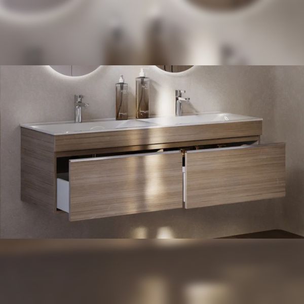 Тумба под раковину подвесная Velvex Pulsus tp.PUL.PUL.140.2Y дуб сонома, 140 см: 2 выдвижных ящика.