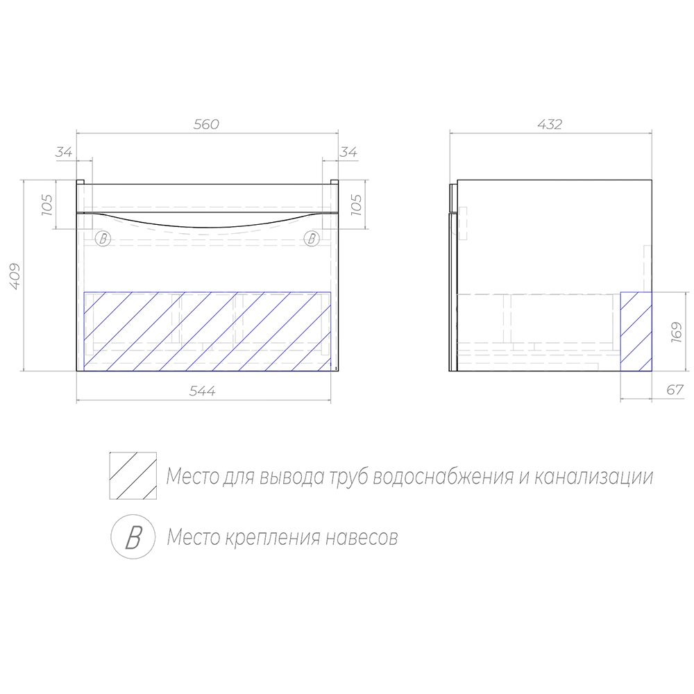 Тумба под раковину подвесная Velvex Vizo tpVIZ.60.1Y-21, 60 см купить