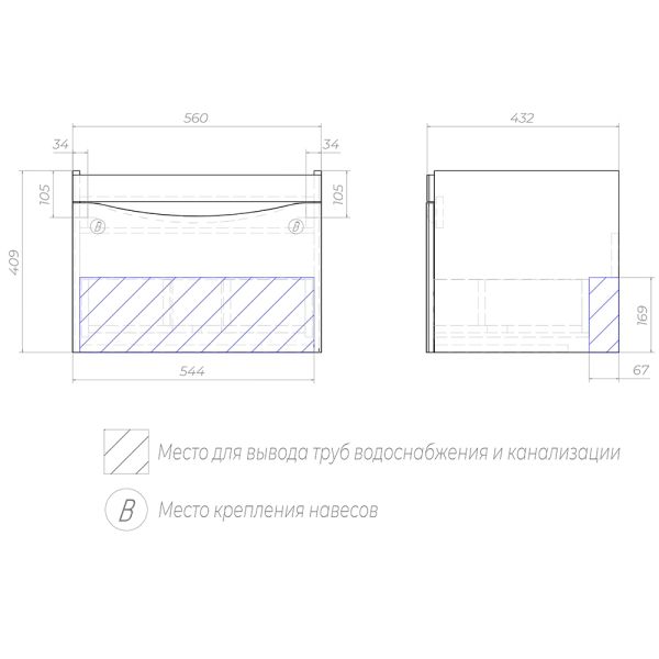 Тумба под раковину подвесная Velvex Vizo tpVIZ.60.1Y-21, 60 см: 1 выдвижной ящик.