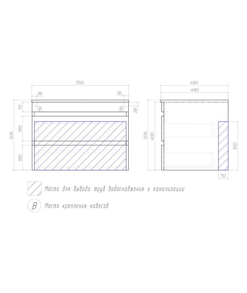 Тумба под раковину подвесная Vigo Urban tp.URB.70.2Y 70 см белый купить