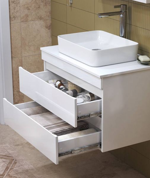 2 ящика. Специальный сифон Vigo в комплекте.Материал корпуса: влагостойкая ЛДСПМатериал фасада: ЛМДФПокрытие фасада: пленка ПВХЯщики: направляющие полного выдвиженияОтсутствие лицевой фурнитуры – интегрированная в фасад ручка