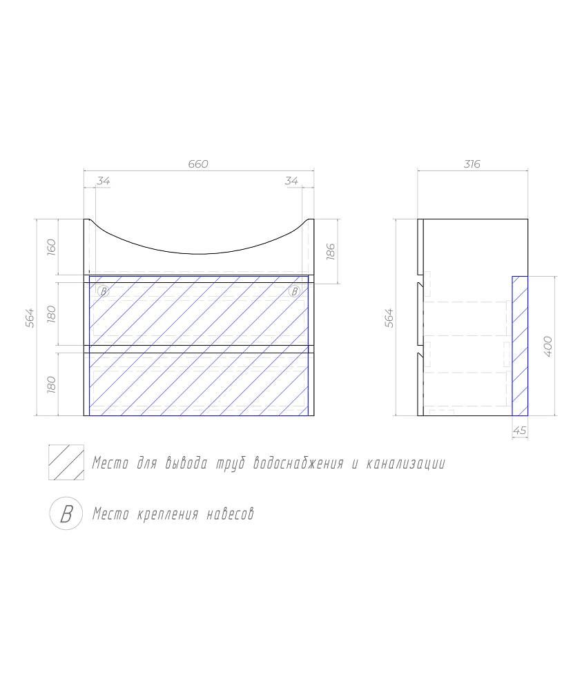 Тумба под раковину подвесная Vigo Wing tp.WIN.BAL.70.2Y 70 см белый купить