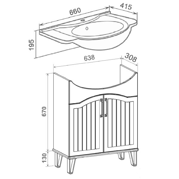 Тумба с раковиной RUNO МАРСЕЛЬ - оригинальное и яркое решение для оснащения ванной комнаты. Тумба под раковину МАРСЕЛЬ (напольная) выполнена в модном цвете с вертикальной "карандашной" фрезеровкой. Тумба в ванную имеет две распашные дверцы и одну внутреннюю полку. В комплекте идут петли со встроенным доводчиком, 2 черные ручки, 4 ножки. Тумба комплектуется керамической раковиной "Классик" (660*420 мм). Раковина имеет глубину 20 см. Мебель для ванной RUNO - красота и практичность в мелочах!