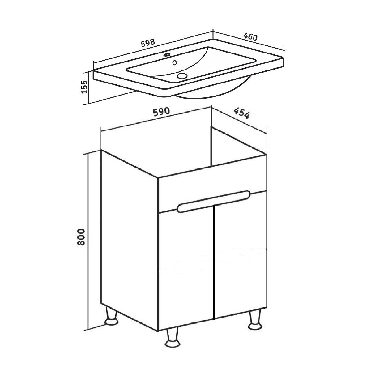 Тумба под раковину Runo напольная 2 двери (под умывальник Omega 60) Парма 60 (00-00001038) купить
