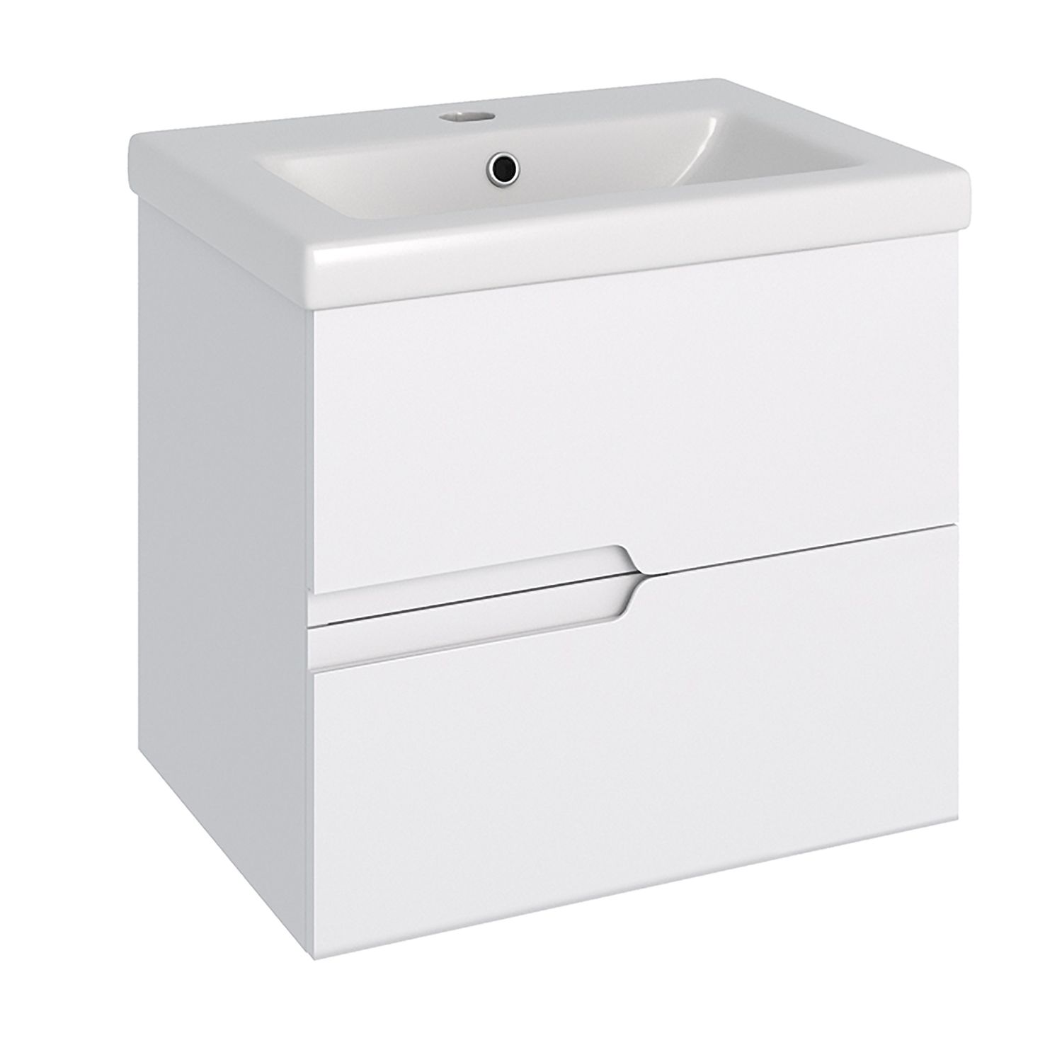 Подвесная тумба функционально состоит из двух ящиков на шариковых направляющих скрытого монтажа с доводчиком. Модель комплектуется умывальником "Como" 60см ТМ Cersanit.