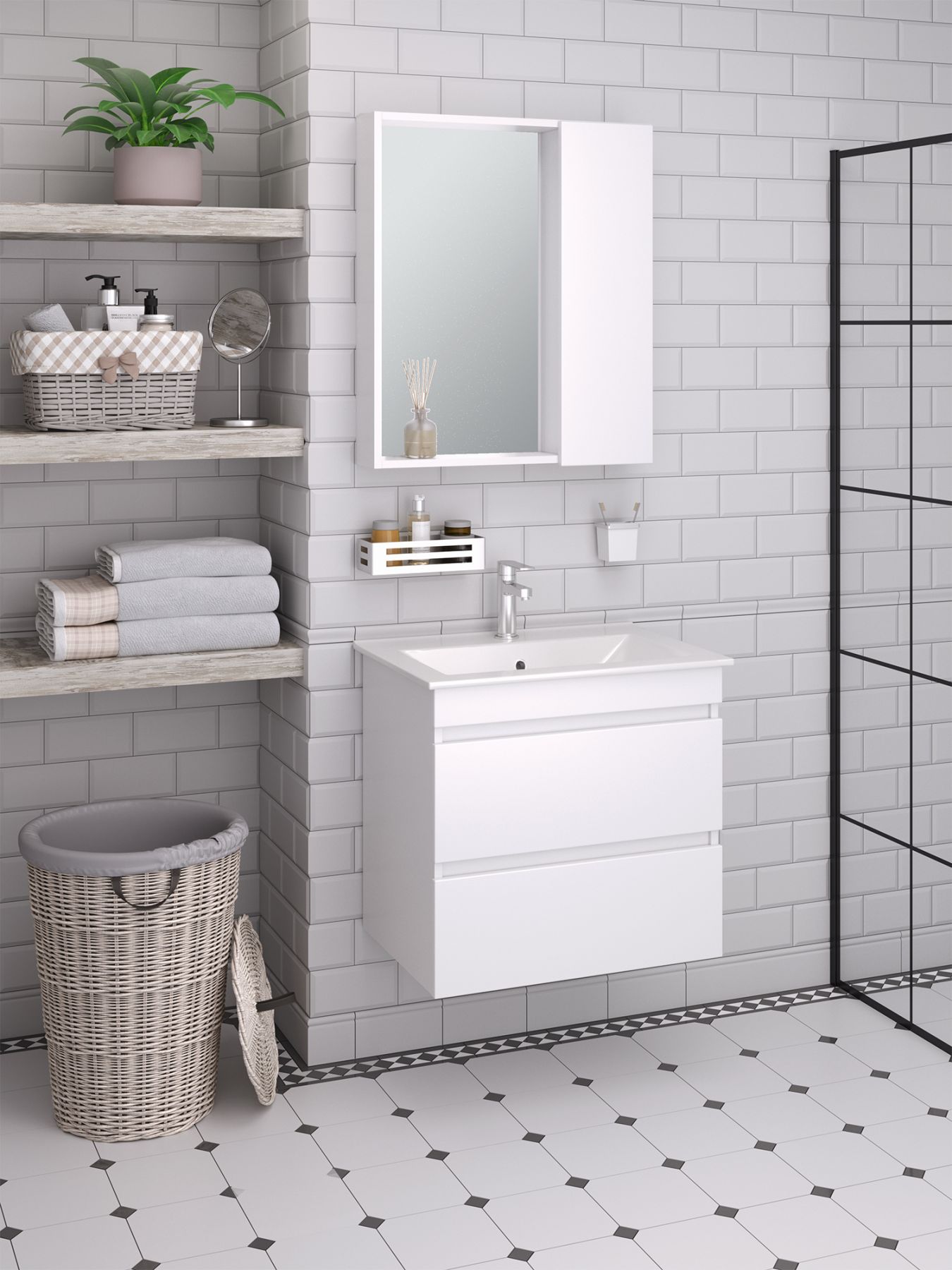 Тумба под раковину Runo подвесная белая (под умывальник Оскар 65 Оскар 65) Манхэттен 65 (00-00001046) купить
