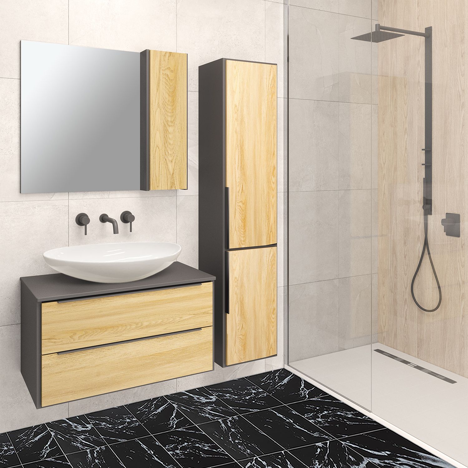 Тумба под раковину Runo подвесная дуб черный (под умывальник Moduo Square 50/ Гамма 56/ Infinity 85/ Moduo Leaf 55) Мальта 85 (00-00001099) купить