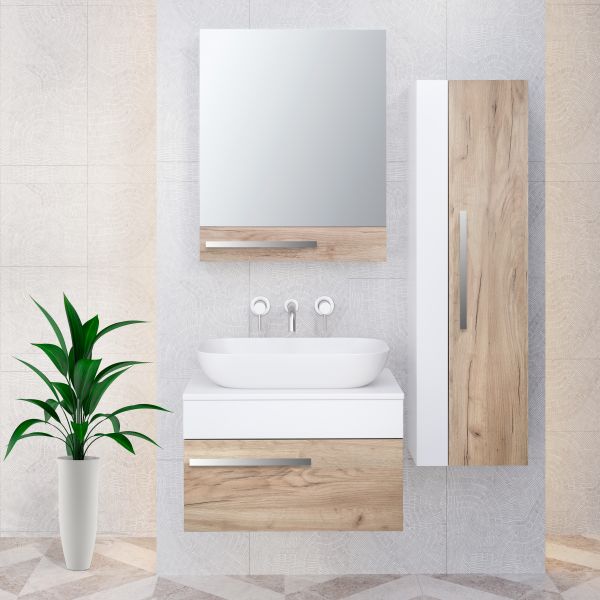 Тумба под раковину в ванную RUNO ВУДЛАЙН (подвесная) - выполнена в ультрасовременном дизайне в цвете крафтовый дуб. Тумба в ванную оснащена выдвижным ящиком на шариковых направляющих. Тумба под раковину ВУДЛАЙН гармонично впишется в любой интерьер ванной комнаты. В комплект входят: 1 ручка, навесы для крепления к стене. К тумбе для ванной комнаты подходят накладные керамические раковины: Infinity 60 с чашей прямоугольной формы (600х370 мм), глубиной 12 см; Moduo 50 SQUARE с чашей прямоугольной формы (500х360 мм), глубиной 15 см; Moduo 55 LEAF - асимметричная раковина, которую можно установить любой стороной, дизайнерское решение для нестандартных интерьеров (565х365 мм), глубиной 15 см; Гамма 56 - c глубокой чашей и высокими бортиками, которые отражают современные тренды в дизайне. (560х370 мм), глубиной 18 см. Мебель для ванной RUNO - красота и практичность в мелочах!