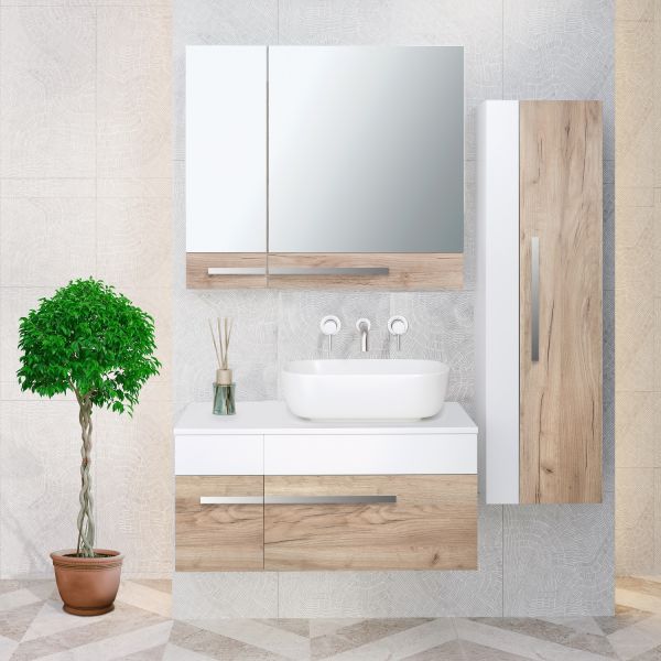 Тумба под раковину Runo подвесная крафтовый дуб Вудлайн 85 (00-00001344) купить