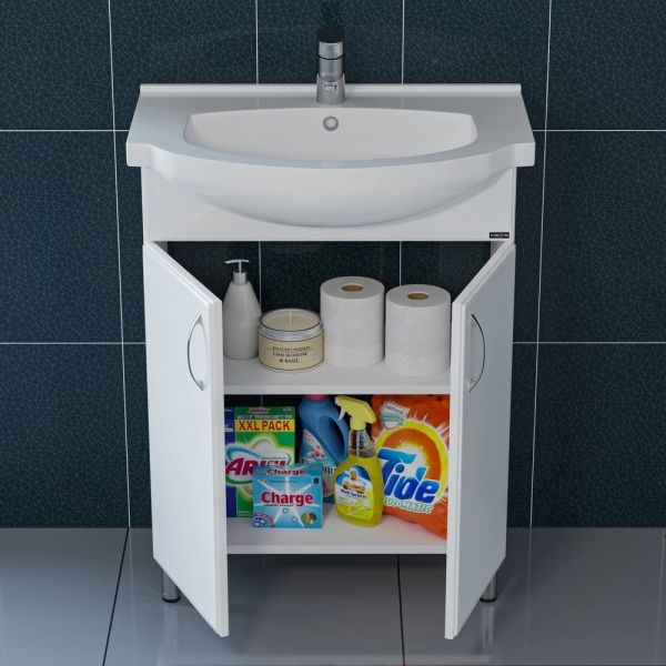 Тумба для комплекта СанТа подойдет как для просторной ванной комнаты, так и для небольшого помещения. Напольный способ установки производится непосредственно на пол, при этом конструкция максимально устойчива при серьезных физических нагрузках.В производстве используют только качественные влагостойкие материалы (ВЛДСП), в составе которых полностью отсутствуют опасные вещества. Серия Венера отличается превосходным дизайном с соблюдением всех ключевых элементов современного стиля. Основным цветом, в котором выполнена тумба под раковину СанТа является белый, гармонирующий с большинством интерьерных решений. Тумба под раковину предусматривает удобную и вместительную систему хранения, состоящую из полок и дверей.Страной бренда СанТа является Россия, все товары производятся с выполнением соответствующих стандартов качества, что позволяет быть полностью уверенными в долговечности и надежности. Тумба для комплекта СанТа поможет сделать уютным любой интерьер и создать идеальную ванную комнату.