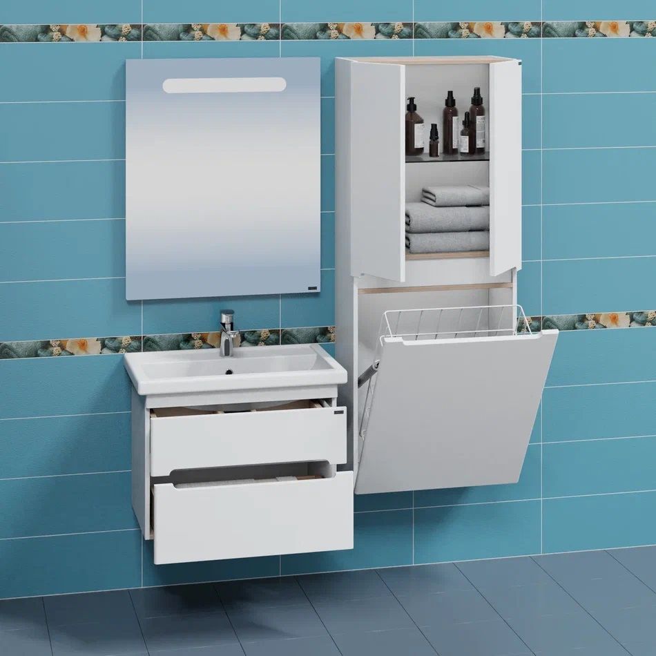 Тумба для комплекта СанТа подойдет как для просторной ванной комнаты, так и для небольшого помещения. Подвесной способ установки дает возможность не только визуально увеличить пространство, но и обеспечивает быстрый и удобный доступ для уборки.В производстве используют только качественные влагостойкие материалы (ВЛДСП), в составе которых полностью отсутствуют опасные вещества. Серия Венера отличается превосходным дизайном с соблюдением всех ключевых элементов современного стиля. Основным цветом, в котором выполнена тумба под раковину СанТа является белый, гармонирующий с большинством интерьерных решений. Тумба под раковину предусматривает удобную и вместительную систему хранения, состоящую из полок и дверей.Страной бренда СанТа является Россия, все товары производятся с выполнением соответствующих стандартов качества, что позволяет быть полностью уверенными в долговечности и надежности. Тумба для комплекта СанТа поможет сделать уютным любой интерьер и создать идеальную ванную комнату.
