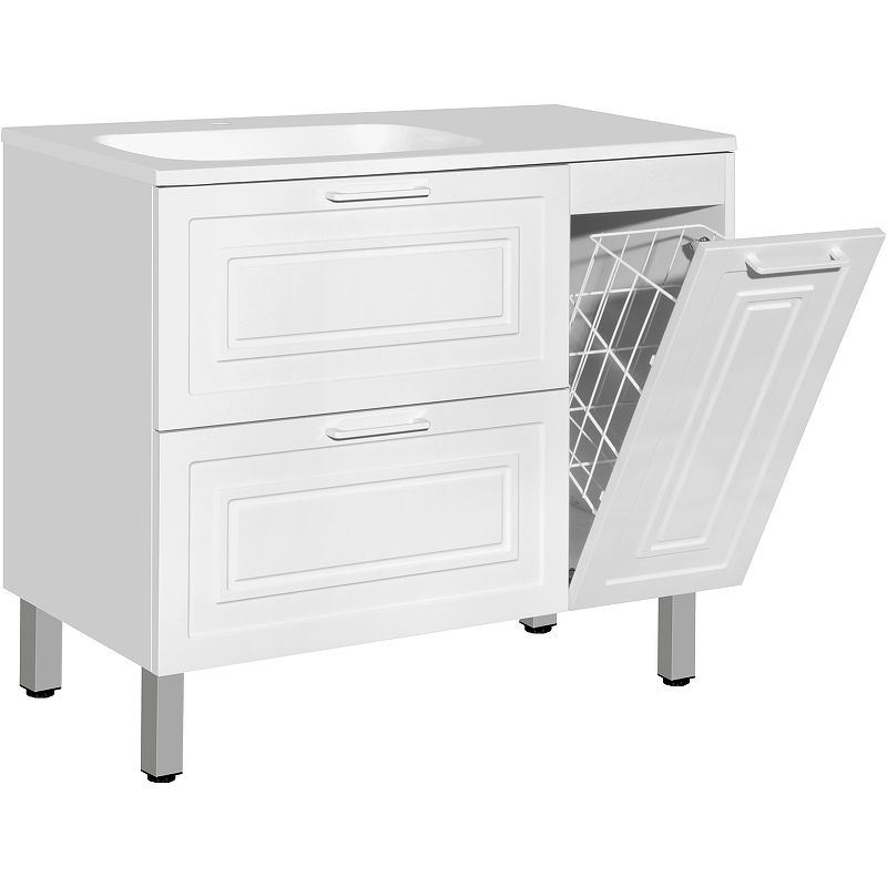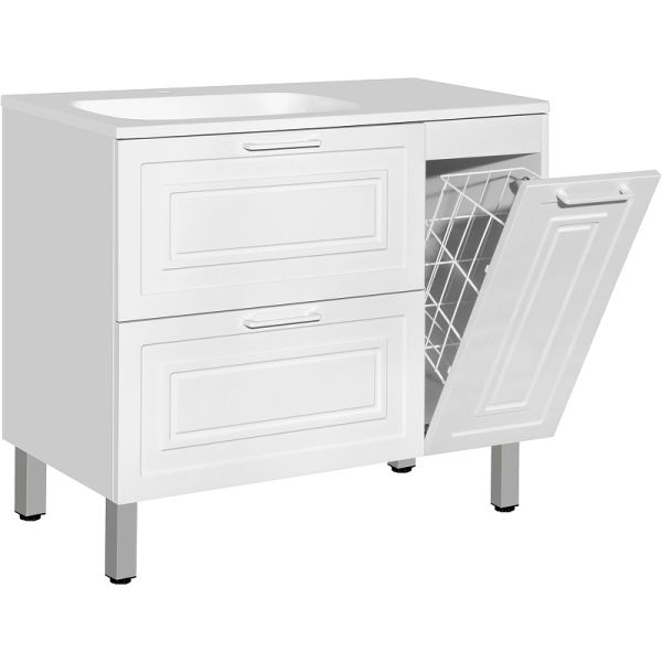 Тумба для комплекта Style Line Альба 90 L с бельевой корзиной роскошно впишется в дизайн любой ванной комнаты, будь то компактная ванная в многоэтажном доме или большой санузел в загородном коттедже. Напольный способ установки производится непосредственно на пол, при этом конструкция максимально устойчива при серьезных физических нагрузках.Компания Style Line использует при производстве высококачественные водоотталкивающие материалы (МДФ), соответствующие всем необходимым требованиям безопасности. Серия Альба отличается превосходным дизайном с соблюдением всех отличительных элементов современного стиля. Основным цветом, в котором выполнена тумба под раковину Style Line Альба является белый, отлично подходящий большинству дизайнерских решений. Тумба под раковину предусматривает удобную и вместительную систему хранения, состоящую из ящиков. Важные габариты изделия: ширина 89.8 см, глубина 45.2 см, высота 82 см.Страной бренда Style Line является Россия, все товары производятся с выполнением соответствующих стандартов качества, что позволяет быть полностью уверенными в долговечности и надежности. Тумба для комплекта Style Line Альба 90 L с бельевой корзиной поможет сделать уютным любой интерьер и создать идеальную ванную комнату.