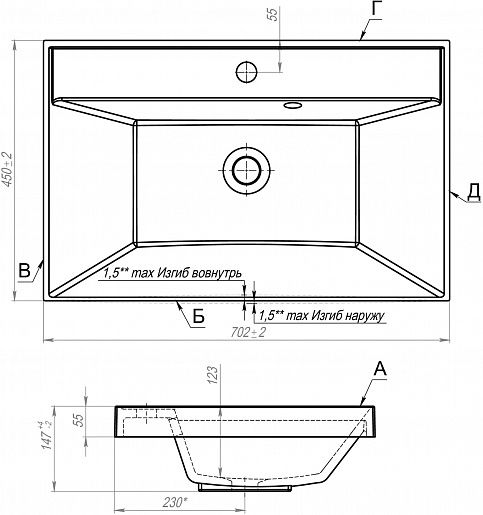 Раковина со слив-переливом.