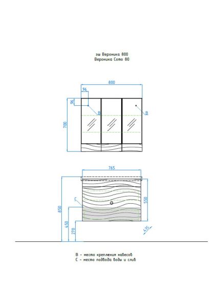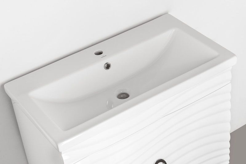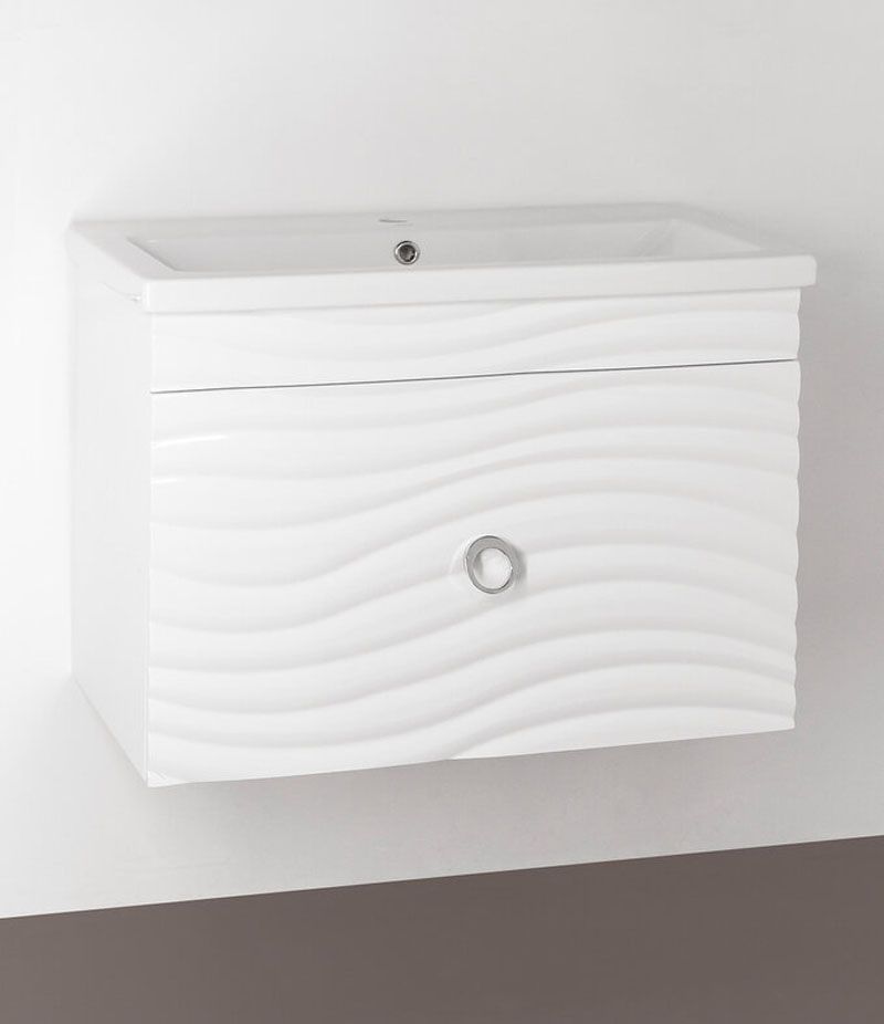 Тумба подвесная бренда "Style Line" коллекции "Вероника" с оригинальной 3D фрезеровкой фасада и доводчиками Hettich. Фурнитура - хром. Мягкие плавные линии необычной фрезеровки фасада создают оригинальные формы, способные украсить любой интерьер. Сборка изделия с помощью эксцентриковых стяжек Hafele; все материалы полностью влагостойкие.Боковины изделий в пленке в цвет фасадов. Данная тумба предусматривает открытую подводку воды