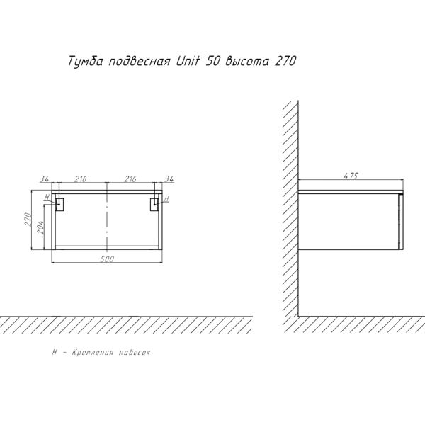 Тумба подвесная без столешницы Velvex Unit tp.UNI.50.1Y белый матовый, 50 см купить