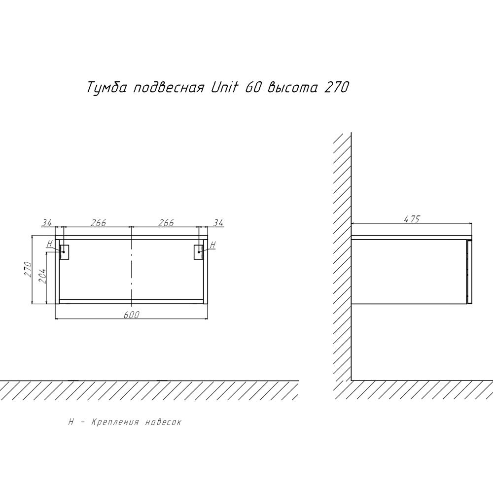 Тумба подвесная без столешницы Velvex Unit tp.UNI.60.1Y белый глянец, 60 см купить