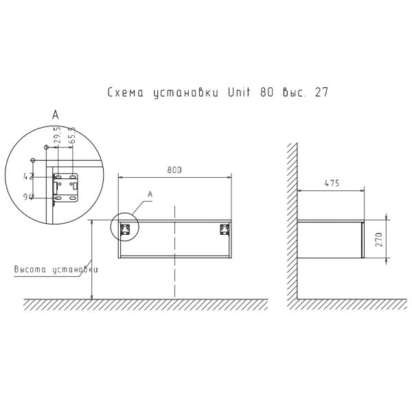 Тумба подвесная без столешницы Velvex Unit tp.UNI.80.1Y белый глянец, 80 см купить
