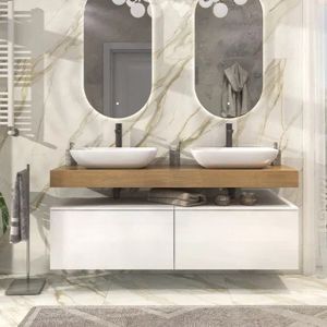 Тумба подвесная без столешницы Velvex Unit tp.UNI.80.2Y белый глянец, 80 см: 1 выдвижной ящик со стеклянными разделителями, 1 внутренний выдвижной ящик.