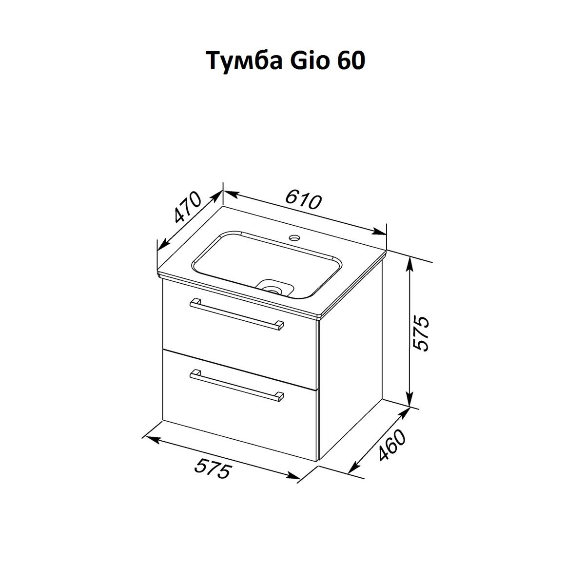 Тумба подвесная Dreja.Rus GIO 60 под умывальник Эйфория-60, белый глянец купить
