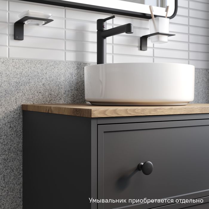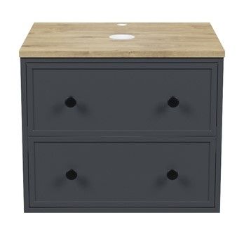 Компактная подвесная тумба Torr трендового темно-серого цвета со столешницей из МДФ в оттенке дуба верона. Сочетает в себе узнаваемый стиль и практичность популярного скандинавского дизайна. Ее четкие формы, теплый цвет дерева, фасады с декоративной филенкой, круглые ручки смотрятся гармонично и впишутся в любой современный интерьер. Подойдет любой накладной умывальник, покупается отдельно.