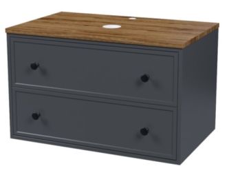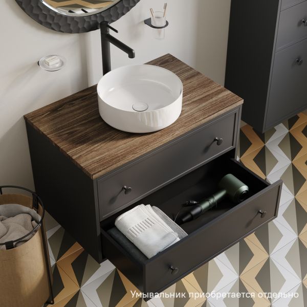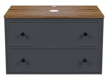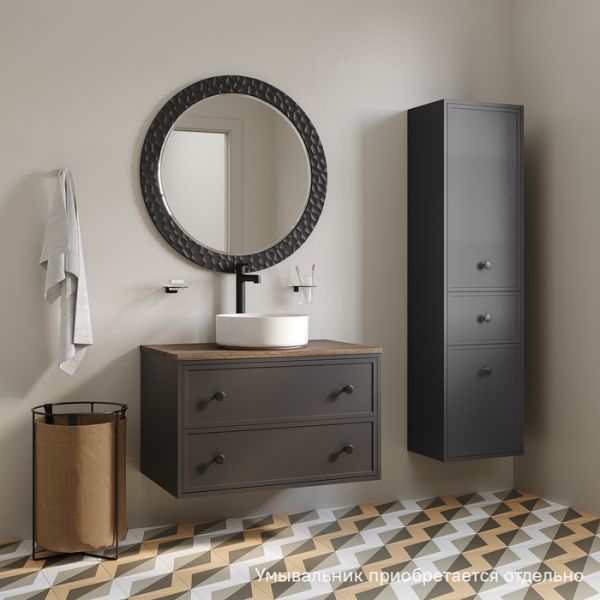 Вместительная подвесная тумба Torr трендового темно-серого цвета со столешницей из МДФ в оттенке ореха макадамия. Сочетает в себе узнаваемый стиль и практичность популярного скандинавского дизайна. Ее четкие формы, теплый цвет дерева, фасады с декоративной филенкой, круглые ручки смотрятся гармонично и впишутся в любой современный интерьер. Подойдет любой накладной умывальник, покупается отдельно.