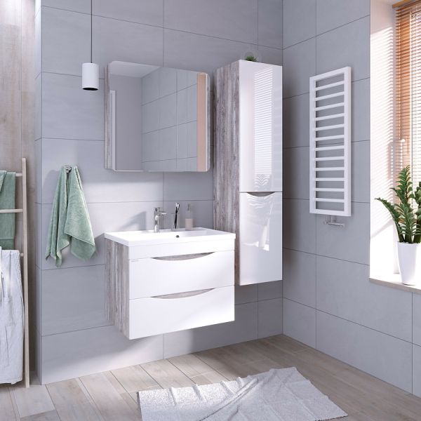 Тумба подвесная Талис-80 имеет два вместительных выдвижных ящика с врезными ручками в плоскости фасада.Выполнена из влагостойкого ЛДСП, устойчивый к перепадам температур и высокой влажности, крепится к стене и не занимает место на полу.Раковина Classika-80 приобретается отдельно.Цвет: бетон пайн, белый глянец.