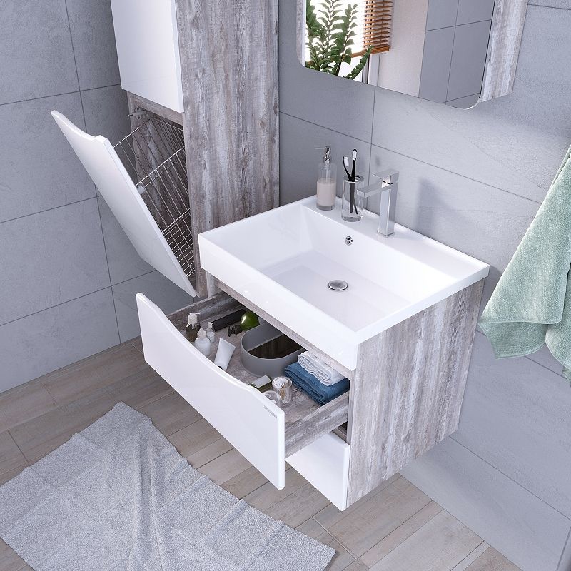 Тумба подвесная под раковину Grossman Талис 108014 80см бетон пайн/белый глянец купить