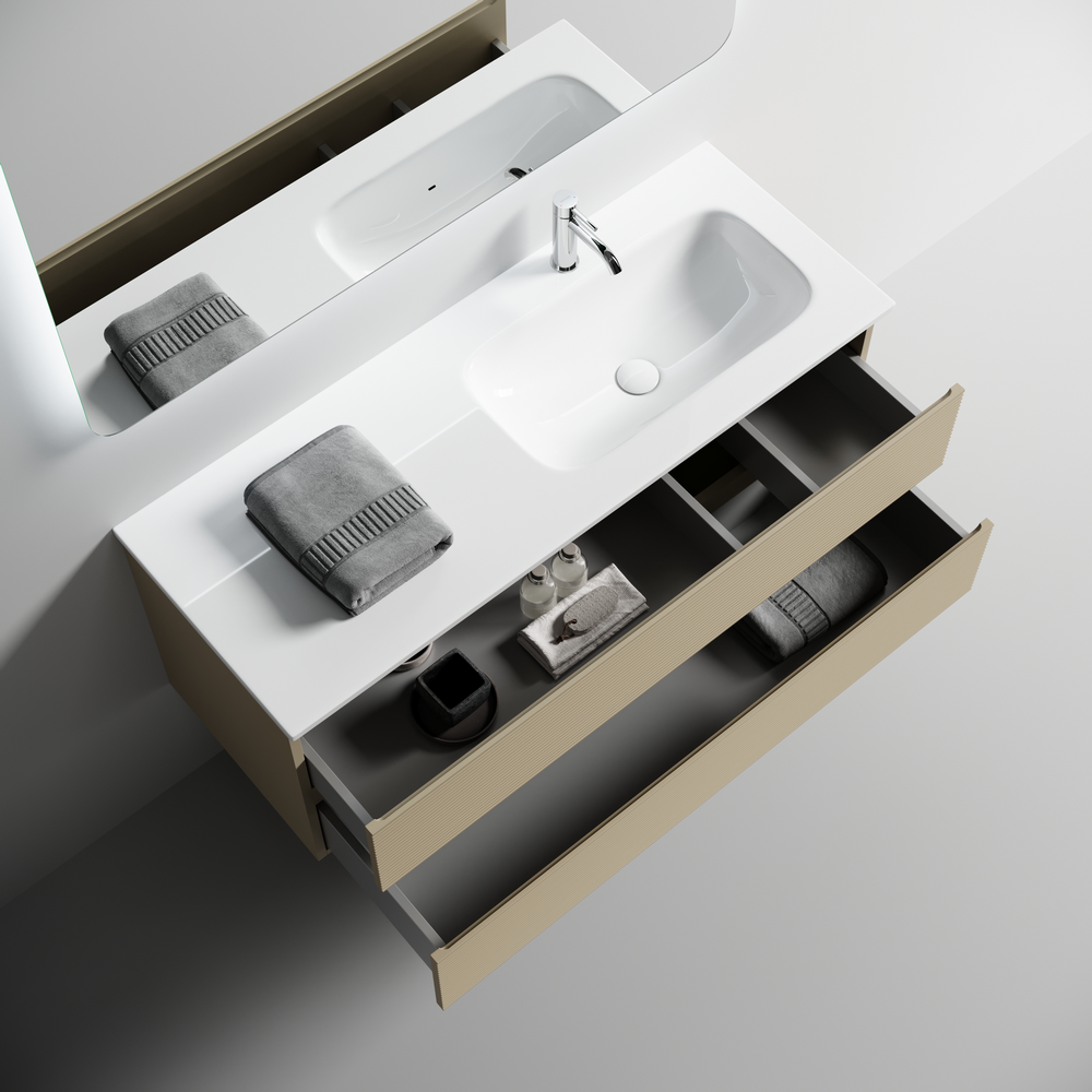 Тумба подвесная с двумя выдвижными ящиками с доводчиками скрытого монтажа