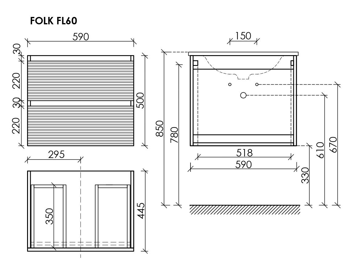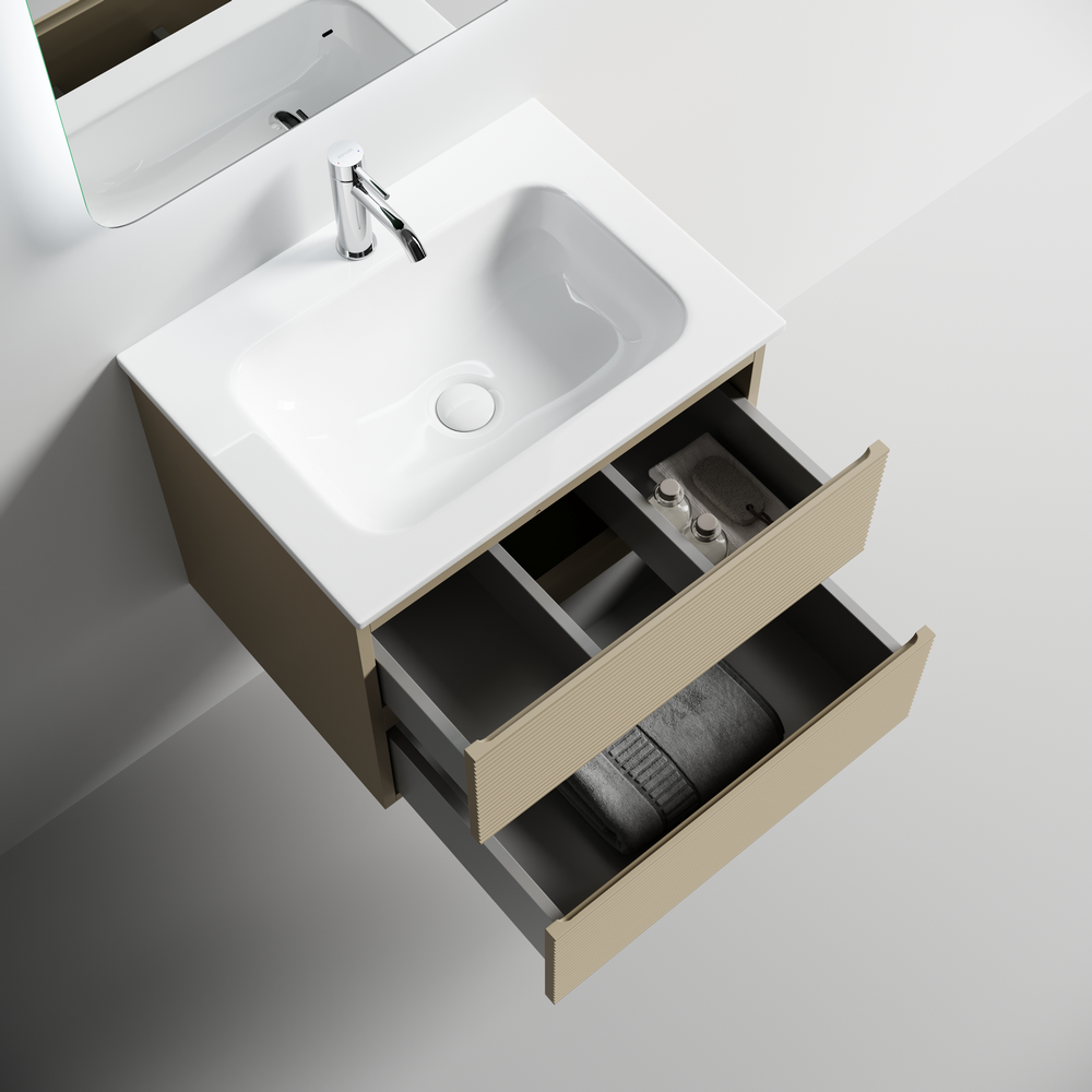 На изображении тумба Folk представлена с зеркалом RAY, смесителем из коллекции ETNA и раковинами Grace CN7011