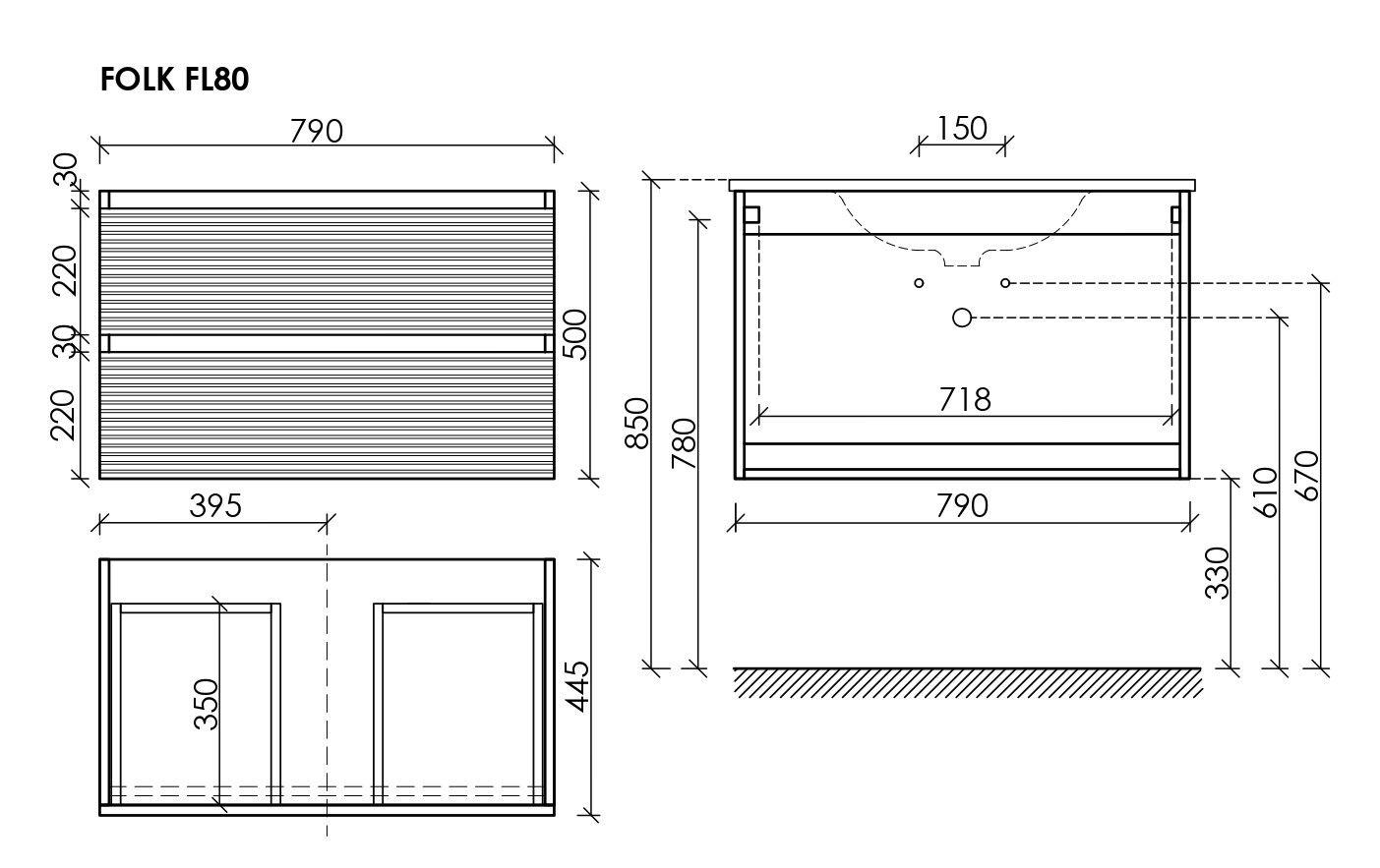 Тумба подвесная с двумя выдвижными ящиками с доводчиками скрытого монтажа