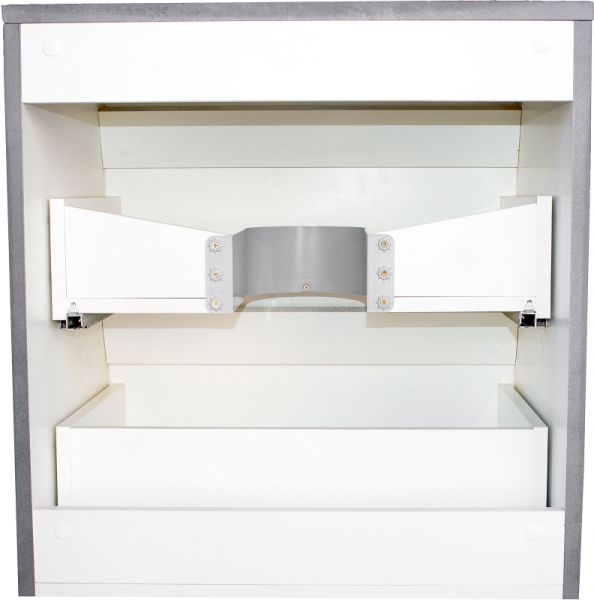 Тумба коллекции Атлантика выполнена в современном стиле с преобладанием прямых строгих линий в дизайне. Она сочетает в себе функциональность и обеспечит удобное хранение ванных принадлежностей. Для размещения ванных аксессуаров в тумбе предусмотрено три выдвижных ящика. Особенностью модели является возможность установки под нее стиральной машины. Тумба отлично впишется в интерьер ванной комнаты в современном дизайне