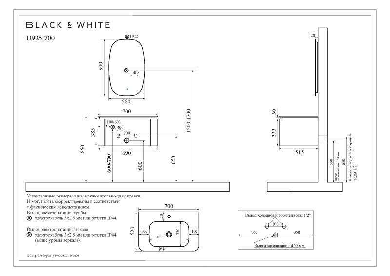 Представляем Вашему вниманию стильную, современную и функциональную коллекцию мебели для ванной U925 от популярного бренда Black & White. Эта изысканная коллекция станет настоящим украшением любой ванной комнаты и обеспечит Вам комфорт и удобство на высоком уровне.