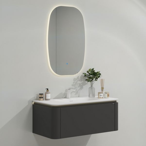 Тумба с раковиной для ванной комнаты датского производителя Black&White в габаритных размерах 100x52x40 см.Данная версия является продолжением линейки U 925 в сером цвете. Раковина — столешница изготовлена из не пористого искусственного камня Corian, который тактильно ощущается как soft touch материал, он легок и прост в уборке,а слив оборудован донным клапаном хромированного цвета. База производится из влагостойкой девятислойной фанеры и покрыта эмалью для долгосрочного сохранения материала.Важной особенностью является контурная диодная подсветка, которая расположена по периметру столешницы.На тумбе предусмотрен один выдвижной ящик, оборудованный фурнитурой UniHopper с доводчиками.Коллекция U 935– эргономичный и продуманный продукт,который наполнит Вашу ванную комнату уютом, а плавные и утонченные формы впишутся в любые современные интерьеры.