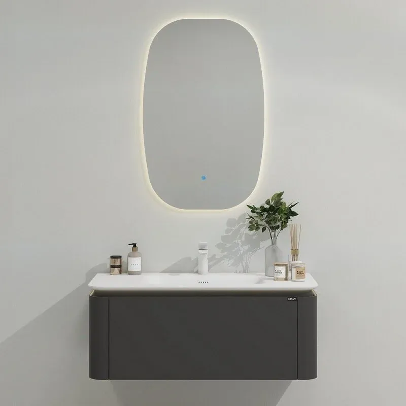 Тумба с раковиной для ванной комнаты датского производителя Black&White. Данная версия является продолжением линейки U 935 в сером цвете. Раковина — столешница изготовлена из не пористого искусственного камня Corian, который тактильно ощущается как soft touch материал, он легок и прост в уборке,а слив оборудован донным клапаном хромированного цвета. База производится из влагостойкой девятислойной фанеры и покрыта эмалью для долгосрочного сохранения материала.Важной особенностью является контурная диодная подсветка, которая расположена по периметру столешницы.На тумбе предусмотрен один выдвижной ящик, оборудованный фурнитурой UniHopper с доводчиками.Коллекция U 935– эргономичный и продуманный продукт,который наполнит Вашу ванную комнату уютом, а плавные и утонченные формы впишутся в любые современные интерьеры.