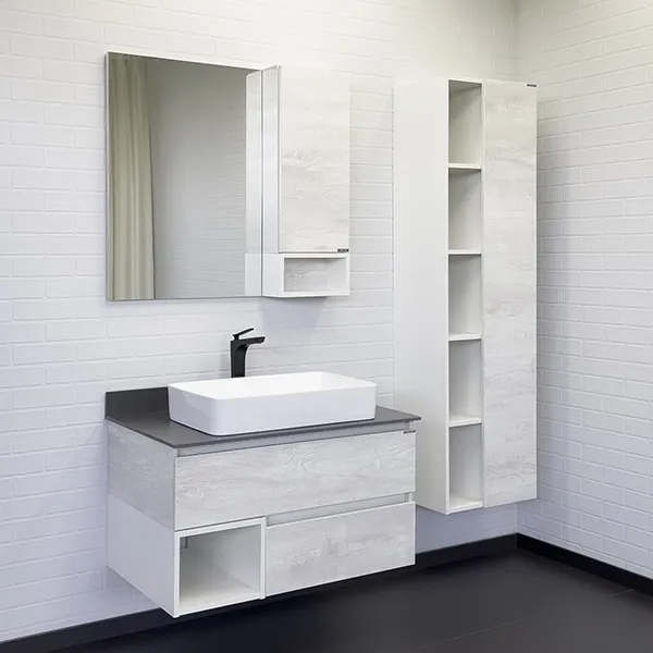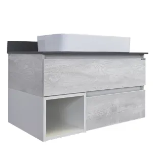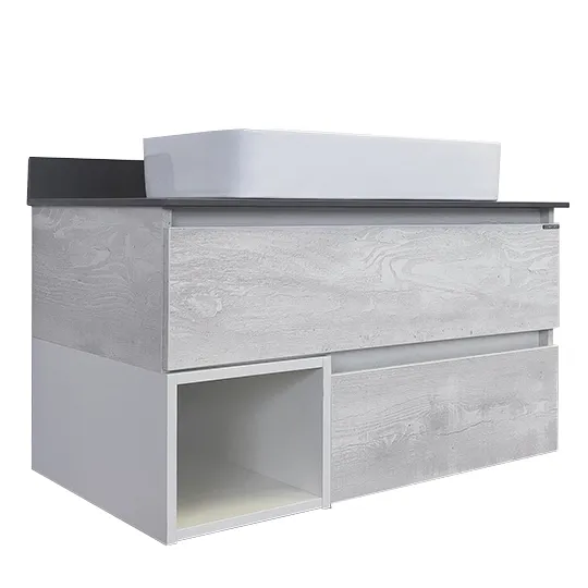 Тумба с раковиной Comforty Прага 00-00014425 90.5 см Дуб белыйХарактеристики: Тумба: Цвет: дуб белый, белый глянец. Цвет столешницы: графит. Материал тумбы: влагостойкий ЛДСП. Материал столешницы: керамогранит. Организация хранения: два ящика с системой плавного закрывания, открытая полка. Монтаж: подвесной. Раковина-чаша: Цвет: белый. Материал: санфарфор. Форма: прямоугольная. В комплекте поставки: тумба, столешница, раковина-чаша 78189, крепежный комплект