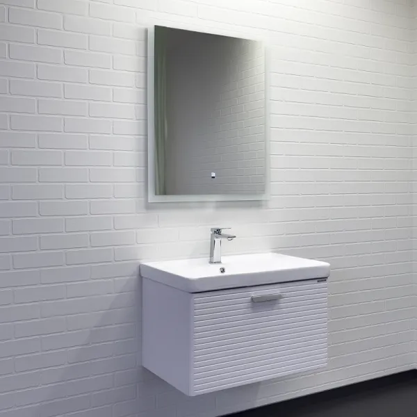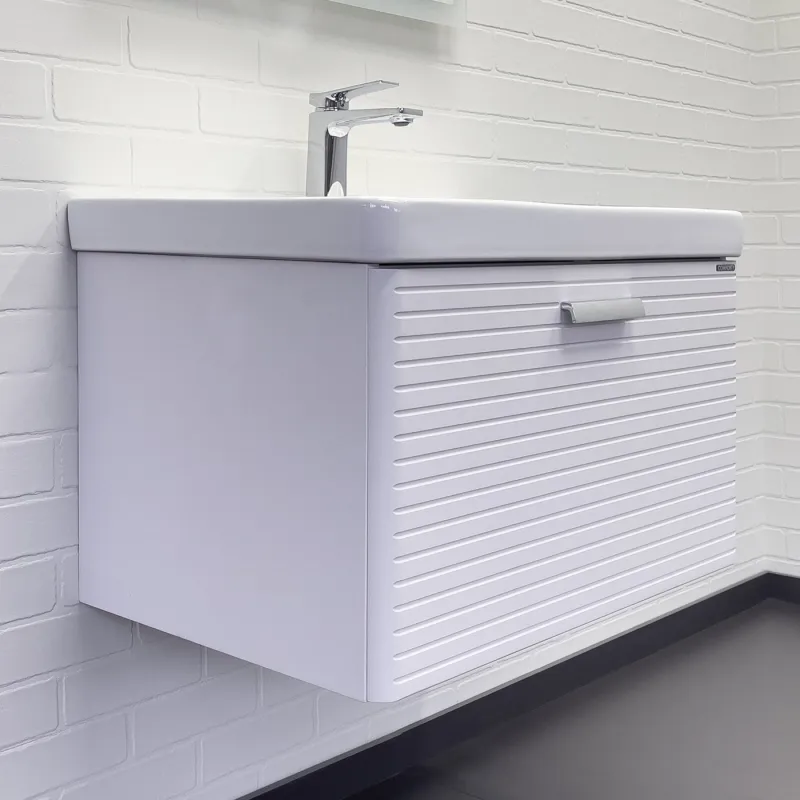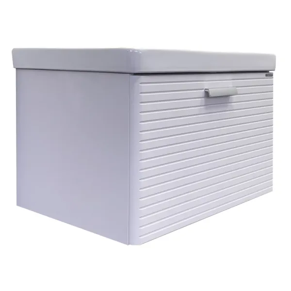 Тумба с раковиной Comforty Танжер00-00019565 70 см белыйПодвесная тумба с одним большим выдвижным ящиком оснащенным направляющими с системой плавного закрывания. Оригинальные эргономичные ручки цвета хром. Фасады тумбы изготовлены из МДФ, фрезерованы горизонтальным узором и облицованы белой матовой пленкой. Тумба подготовлена для подключения водоснабжения снизу и сзади. В комплекте: керамическая раковина Comforty 4470